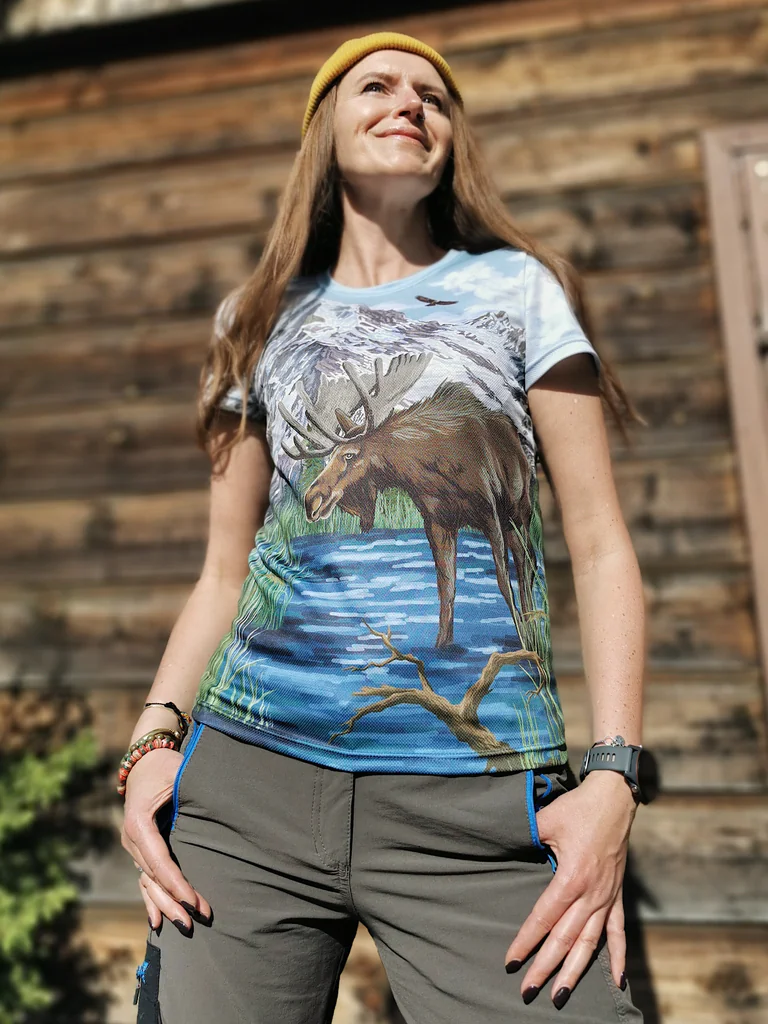Szukasz wyjątkowego i praktycznego prezentu dla bliskiej Ci kobiety, która kocha góry i przyrodę? Trekkingowa koszulka z łosiem Kazikiem to doskonały wybór. Jej oryginalny design i funkcjonalność z pewnością sprawią radość każdej miłośniczce aktywnego spędzania czasu na świeżym powietrzu. To prezent, który łączy w sobie piękny projekt, wygodę i pasję do natury.