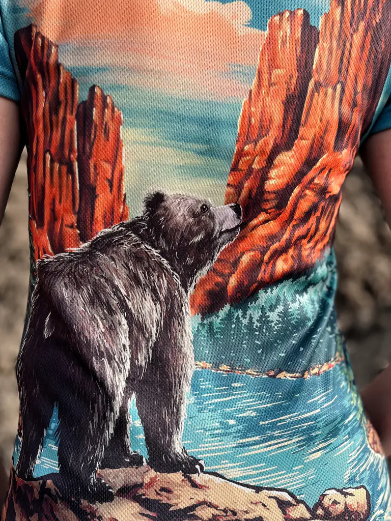 Wyróżnij się na szlaku dzięki unikalnej grafice, która opowiada własną historię. Na koszulce zobaczysz majestatycznego niedźwiedzia, dumnie stojącego na kamieniu, wokół niego rozpościerają się malownicze szczyty. Ta autorska ilustracja została stworzona specjalnie dla nas przez utalentowaną ilustratorkę, co gwarantuje jej niepowtarzalność i wyjątkowy styl. Jeśli szukasz damskiej koszulki z niedźwiedziem, która zachwyca detalami i przenosi Cię wprost w serce gór, właśnie ją znalazłaś. To połączenie natury, piękna i sportowego ducha, które sprawi, że poczujesz się wyjątkowo na każdym szlaku.