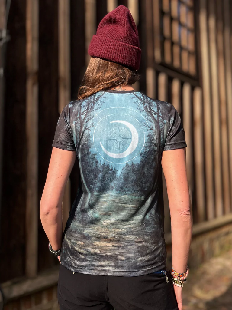 Ta koszulka to zdecydowanie pomysł i spełnione marzenie Mateusza, który uwielbia poruszać się w baśniowych przestrzeniach. Jego wielkie zamiłowanie nie tylko do gór i przyrody, ale i do fantastyki i pewnego rodzaju surrealizmu, sprawiło, że wizja tej koszulki była super wyraźna, a pragnienie o jej powstaniu coraz silniejsze.