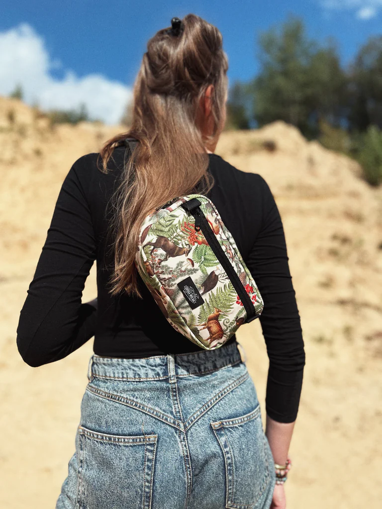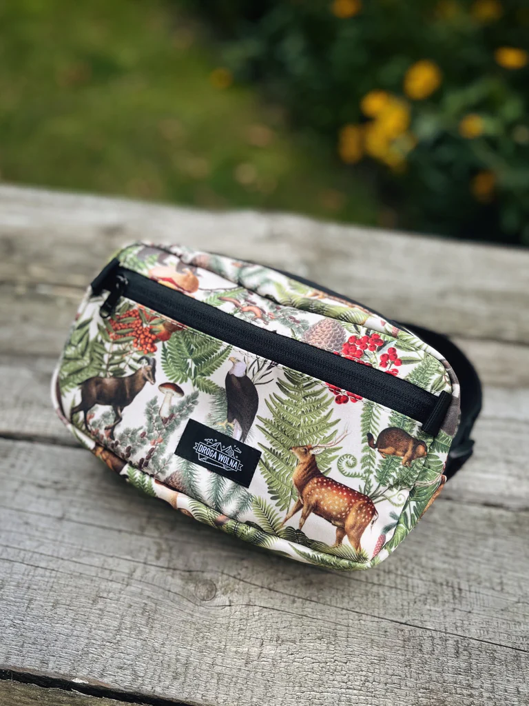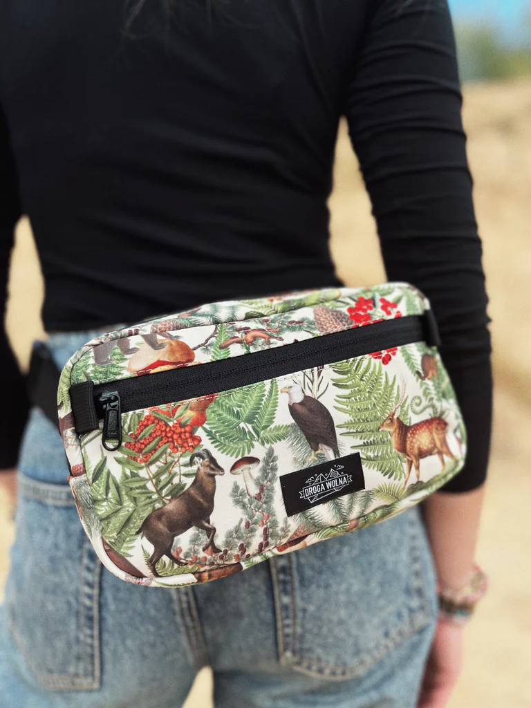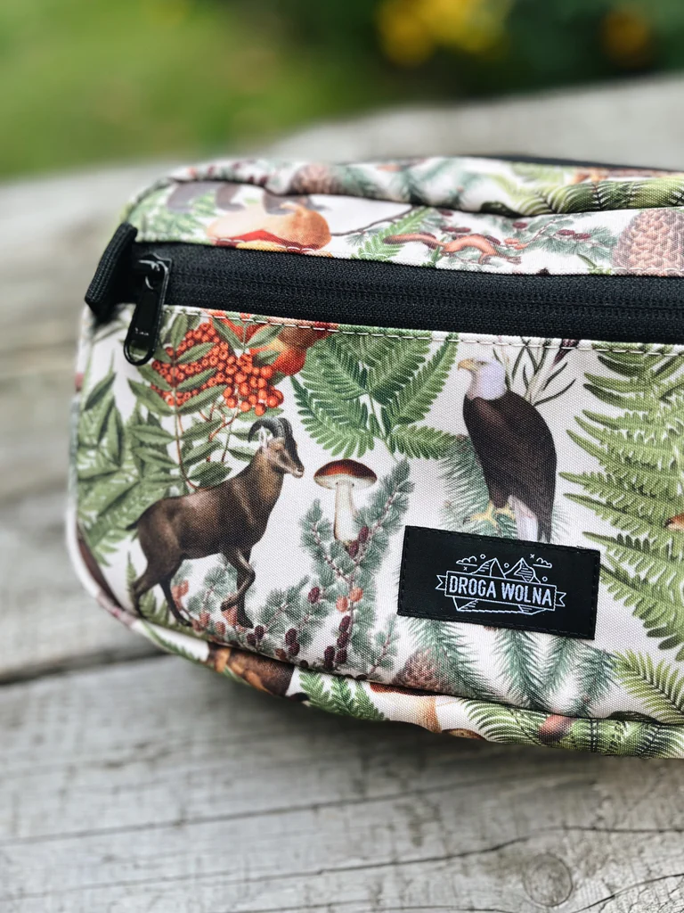 Sercem tej saszetki jest wyjątkowy, autorski kolaż „Górska Przyroda”, stworzony specjalnie dla nas. Jest więcej niż wzorem — to hołd dla piękna dzikiej fauny i flory. Na grafice znajdziesz wizerunki zwierząt typowych dla górskich i leśnych regionów: niedźwiedzia, kozicy, orła oraz jelenia.. Ta saszetka z grafiką to idealne dopełnienie naszej kolekcji, w której ten sam motyw zdobi już koszulkę termoaktywną oraz komin wielofunkcyjny. Wybierając nerkę „Górska Przyroda”, zyskujesz nie tylko praktyczny produkt, ale również unikalne dzieło sztuki. To także świetny i oryginalny prezent dla miłośnika natury, który z pewnością doceni unikalny design.