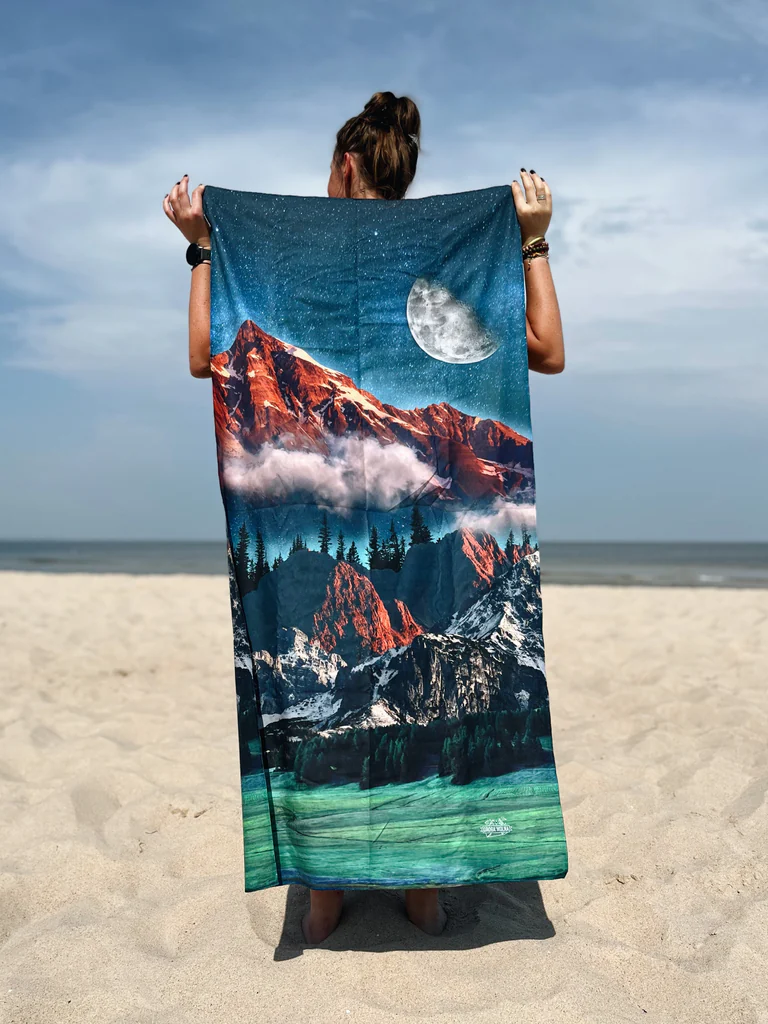 Niektóre historie piszą się na szlaku, a ten ręcznik szybkoschnący opowiada jedną z nich. To coś więcej niż zwykły ręcznik – to Twój osobisty, praktyczny towarzysz, który wniesie oddech górskiej przygody do każdej chwili. Stworzony z myślą o miłośnikach wędrówek, pasjonatach camperów i wszystkich, którzy czują, że ich serce bije w rytmie górskich przygód, ten ręcznik to absolutny must-have w plecaku każdego górołaza. Jest to produkt, który zaskoczy Cię swoją funkcjonalnością, ale przede wszystkim zachwyci autorskim wzornictwem. Grafika „Górska Baśń” została stworzona specjalnie dla nas przez znaną polską kolażystkę, która z delikatnością i wrażliwością przeniosła na materiał cały urok i magię górskiego krajobrazu. To prezent idealny dla każdego górołaza, który szuka nie tylko funkcjonalnych, ale i pięknych przedmiotów.